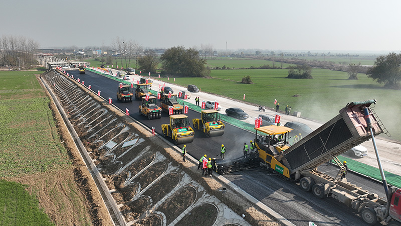 五河至蒙城高速公路TJ—04標瀝青試驗段順利鋪設