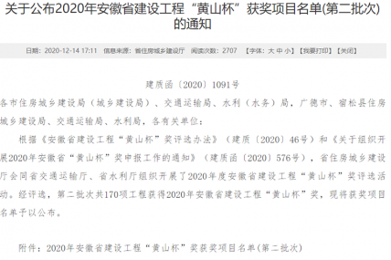 近日,2020年安徽省建設(shè)工程“黃山杯”獎評選結(jié)果揭曉,由安徽省交通建設(shè)股份有限公司(以下簡稱安徽交建)施工建設(shè)的全椒縣城東片區(qū)一期道路工程、揚州至績溪高速公路...