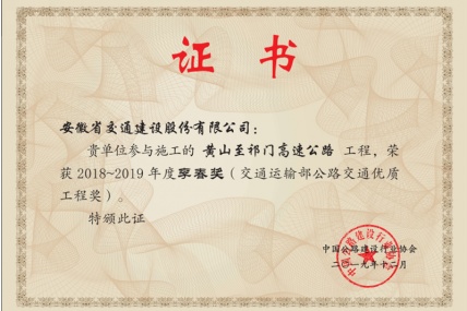 近日,從中國公路建設行業(yè)協(xié)會傳來喜訊,安徽省交通建設股份有限公司黃山至祁門高速、揚州至績溪高速公路寧國至績溪段項目雙雙榮獲2018-2019年度李春獎。
