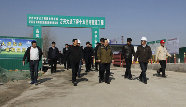 11月25日上午,安徽省委常委、合肥市委書記宋國權(quán),市長凌云深入建設(shè)一線,實地調(diào)研了安徽交建承建的十五里河濕地工程和方興大道下穿十五里河隧道工程項目.宋書記、凌市長一行到達方興大道項目駐地后,首先詳細了解了項目承建單位—安徽省交通建設(shè)股份有限公司的詳細情況;聽取了該項目建設(shè)的總體規(guī)劃、實施進展、生態(tài)文明建設(shè)等重點工作的匯報。宋書記高興地指出,安徽交建作為合肥市大建設(shè)的先頭軍、排頭兵要有使命意識、責任擔當,工程建設(shè)過程中要注重生態(tài)環(huán)境保護,牢固樹立和踐行生態(tài)文明觀、科學發(fā)展觀。
