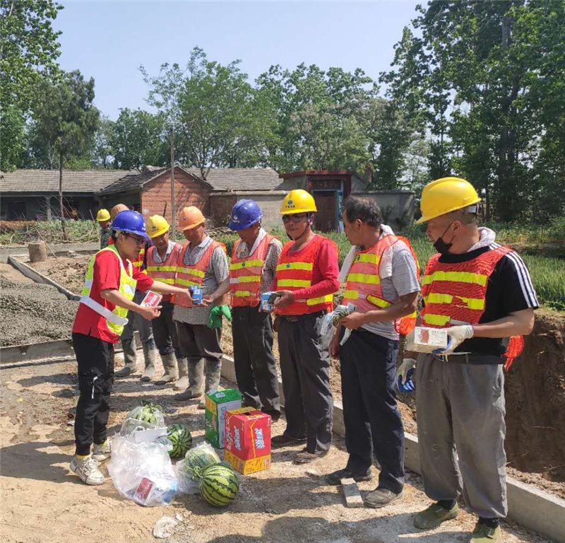 施工加速度的背后是汗水。在五一期間,界首市氣溫連續(xù)一周高達(dá)36℃,項(xiàng)目部完善高溫作業(yè)應(yīng)急處理預(yù)案,合理安排作息時(shí)間,減少了白天室外作業(yè)時(shí)間,披星戴月、節(jié)假無休的搶工模式也成了家常便飯?!翱嗍强嗔它c(diǎn),但也是鍛煉的好機(jī)會(huì),雖然任務(wù)重,但是大家戰(zhàn)斗在一起,共同為榮譽(yù)而戰(zhàn),多苦也是值得的?!表?xiàng)目部管理人員這樣說道。為保障每一位工人的人身安全,項(xiàng)目部還積極向作業(yè)人員宣傳高溫期間防暑降溫基本常識(shí)和救援知識(shí),增強(qiáng)高溫天氣預(yù)防中暑的安全意識(shí)和急救能力,并為各工區(qū)施工人員發(fā)放防暑降溫物品。