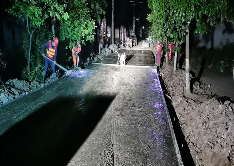 夜間加班施工混凝土路面