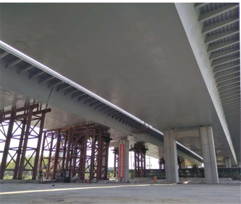安徽交建興業(yè)大道項目位于合肥經濟開發(fā)區(qū)北區(qū)(高劉鎮(zhèn))以及蜀山區(qū)小廟鎮(zhèn)范圍內,南起長江西路,北至合肥市空港示范區(qū)內光福路,全長約13.27公里,設計時速60km/h。定位為交通性干路,等級為城市主干道,也是新橋機場應急通道之一。其中安徽交建承建的二標段位于經開區(qū)高劉鎮(zhèn),道路全長約2.9公里,包含跨G40合六葉高速橋,主橋與合六葉高速公路相交,采用橋梁形式跨越高速公路,斜橋正做,主橋采用等截面連續(xù)鋼箱梁,興業(yè)大道上跨合六葉橋梁全長約445米。