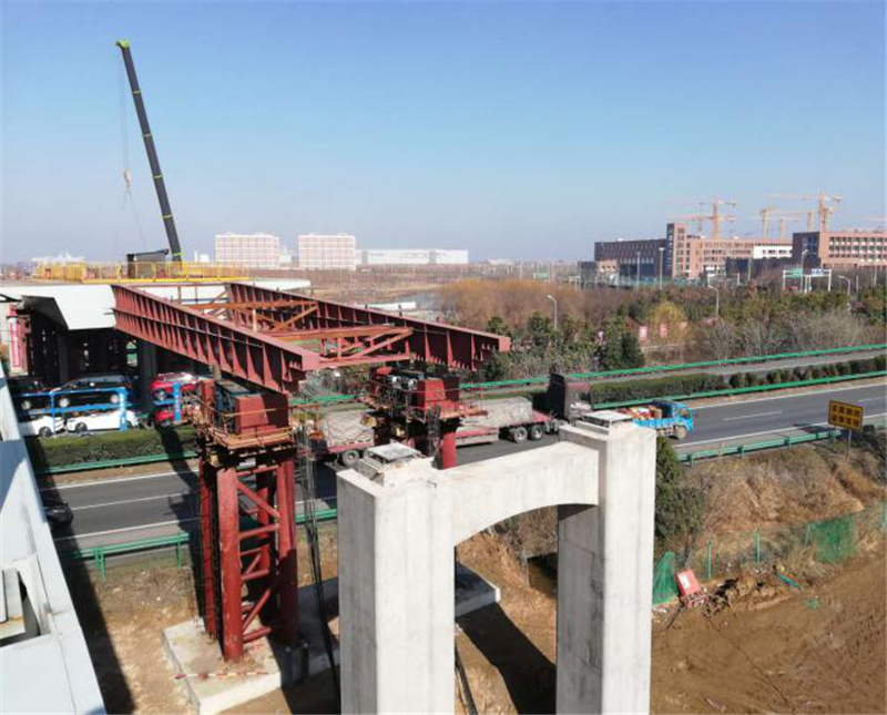 本項目于2019年4月底開工建設,目前上跨合六葉高速公路東西雙幅橋梁頂推、落梁已經全部結束,整個頂推施工進展順利。