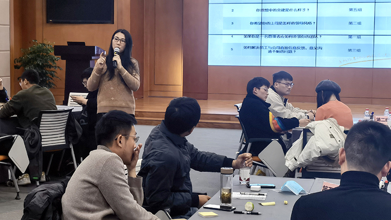 在共創(chuàng)會(huì)環(huán)節(jié),大家就“如何快速融入公司”、“你希望的領(lǐng)導(dǎo)風(fēng)格”、“假如你是管理者,如何帶好團(tuán)隊(duì)”等問題各抒己見并展開激烈討論。這一環(huán)節(jié)旨在促進(jìn)新員工的成長和融入,讓大家深刻體會(huì)團(tuán)隊(duì)、責(zé)任、執(zhí)行的意義。