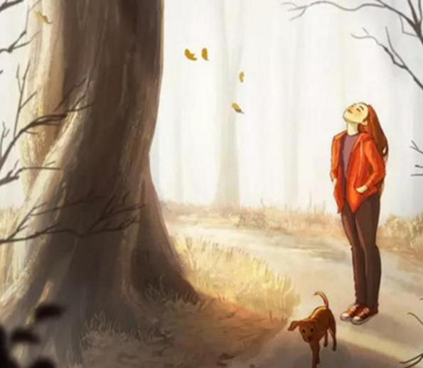 蔚藍(lán)的天空,飄落下羽毛和樹(shù)葉,